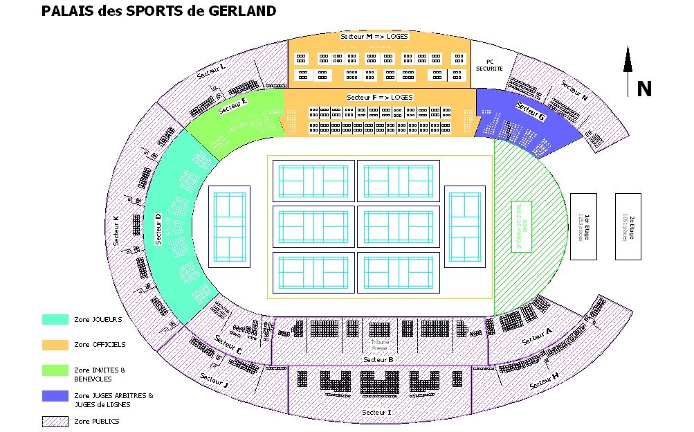 Les différents secteurs de couleur correspondent aux zones réservées suivantes :